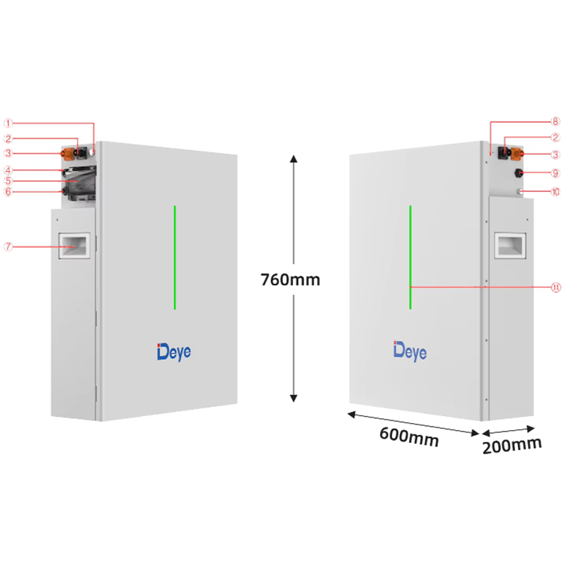 The RW-F10.2-B is a lithium iron phosphate battery developed by DEYE. It provides reliable power for various equipment and systems, making it ideal for applications requiring high power, limited installation space, low-temperature operation, and long cycle life.